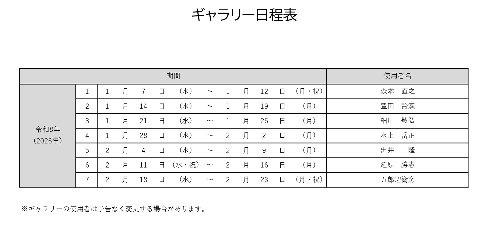 なお、展示販売場内のギャラリーは以下週替わりで展示を行います。