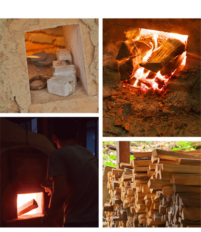 備前焼は、土を水でこねて形を作り、窯に入れて焚き木を燃やし、ゆっくり時間をかけて焼き上げる。