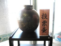 <投票所> 青年部作品展示コーナー 青年部メンバー30名の作品30点を展示 日生会場「投票壷」 投票は写真パネルを見て行います。 注意 投票用紙の配布は対象の日生飲食店(19店舗)のみとなります。
