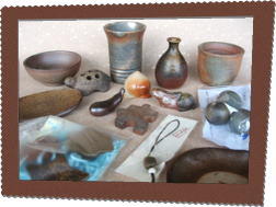 ミニ徳利、一口カップ、豆皿、箸置、備前玉などの備前焼小品を、